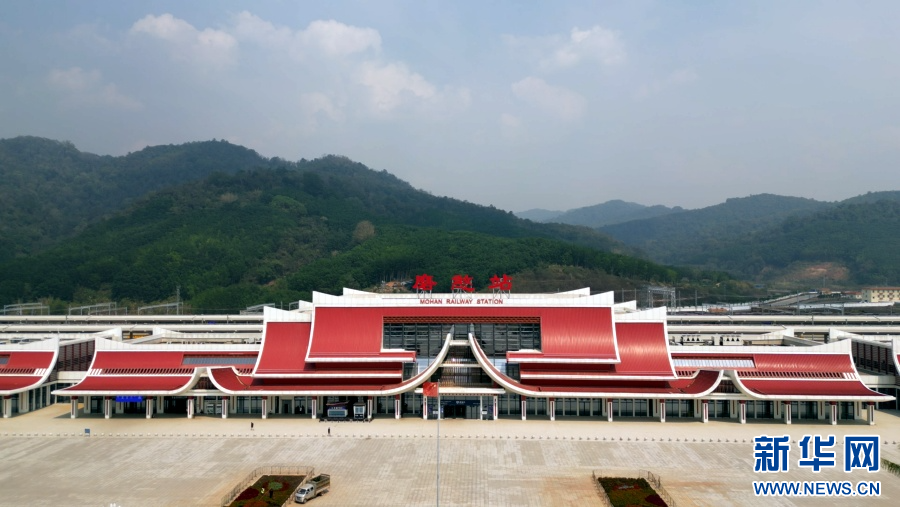 航拍视角下磨憨站外景(3月28日摄)。新华网发(勐腊海关 供图)