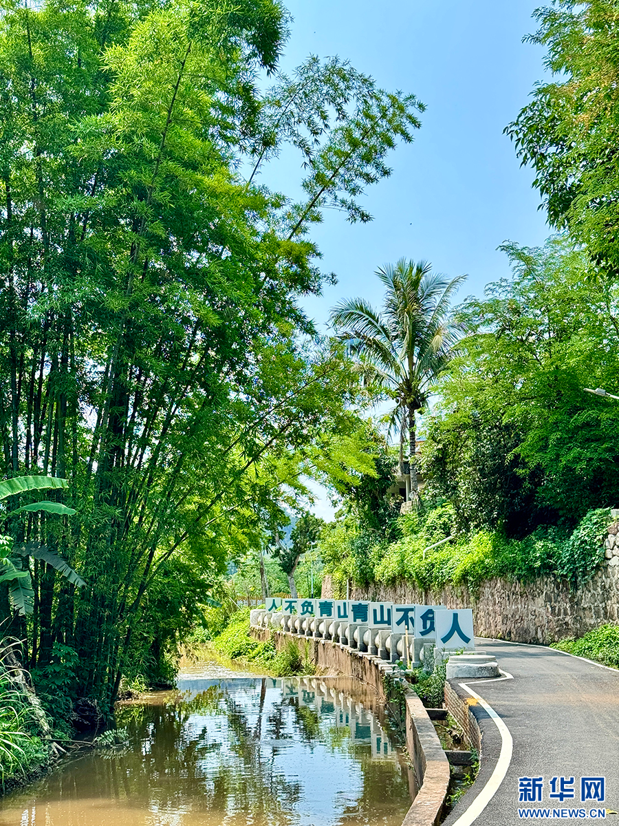 尚冈村内具有傣族特色的打卡墙(5月16日摄)。新华网发(李娜 摄)