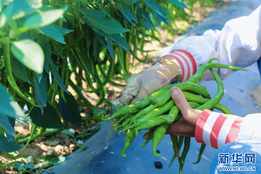 采摘工人正在采摘辣椒(摄于5月14日)。新华网发(景谷县融媒体中心供图)