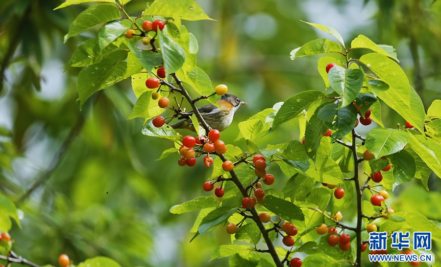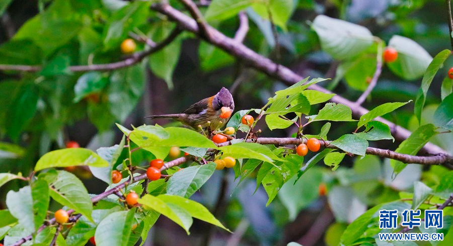 在云南省保山市龙陵县的山野上,零星分布的樱桃红了。走进细看,一颗颗黄中带红、红中带亮的樱桃缀满枝头,引来了唧唧喳喳的小鸟儿们前来抢“鲜”。近日,当地摄影爱好者用相机拍到了几段黄颈凤鹛在枝头吃红樱桃的有趣画面。(完)