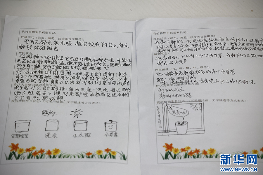 学生记录下植物生长情况(5月23日摄)。新华网发(刘云 摄)