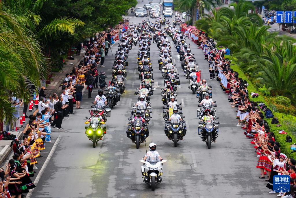 5月25日,车队在泸水市怒江大道上巡游。新华社记者 王静颐 摄