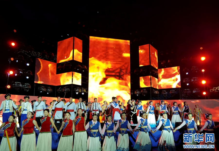 歌曲《歌声飞出心窝窝》演出现场(5月27日摄)。新华网发(高菁菁 摄)
