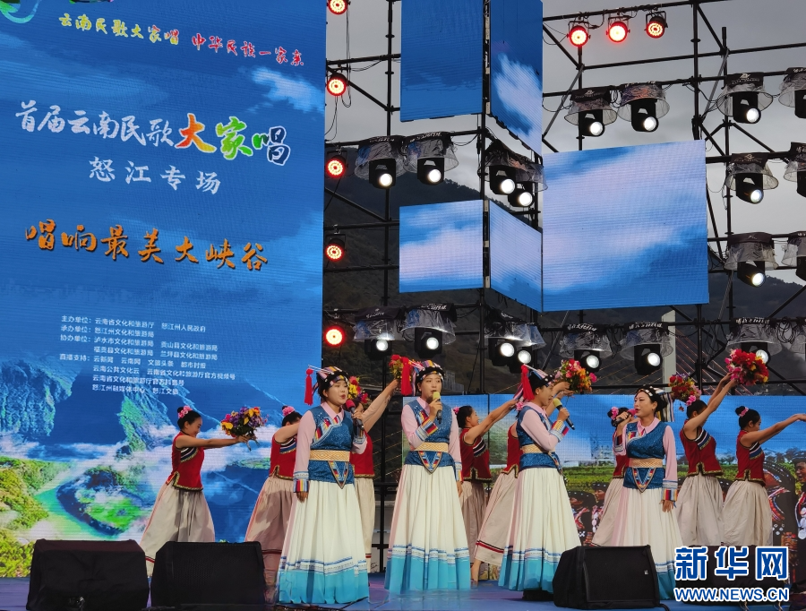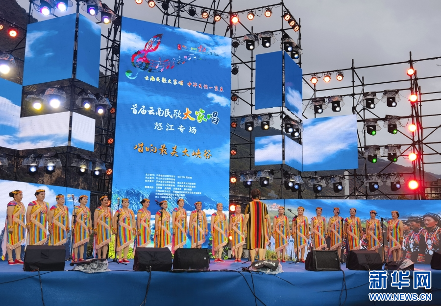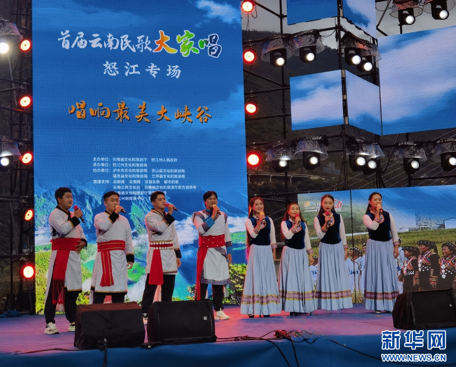 活动现场,怒族歌曲《歌声飞出心窝窝》、普米族歌曲《神山下的普米人》、傈僳族歌曲《欢乐的笛哩图》、独龙族歌曲《太阳照到独龙江》等一首首悠扬的民歌回荡在怒江大峡谷,给现场观众带来了一场视听盛宴。