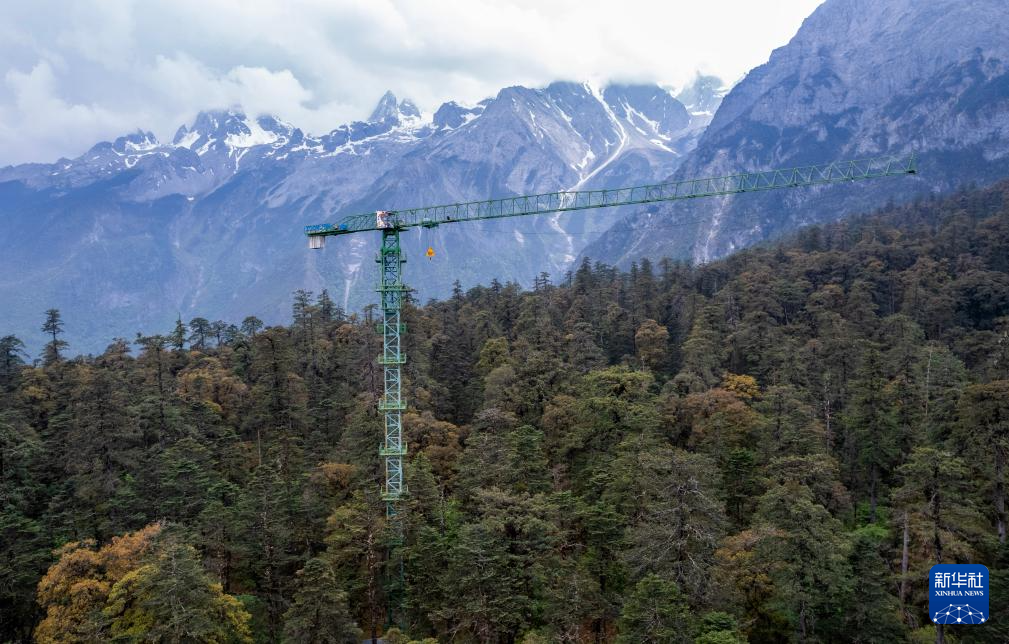 2024年5月24日拍摄的云南丽江森林生物多样性国家野外科学观测研究站云杉坪大样地森林林冠塔吊(无人机照片)。新华社记者 陈欣波 摄