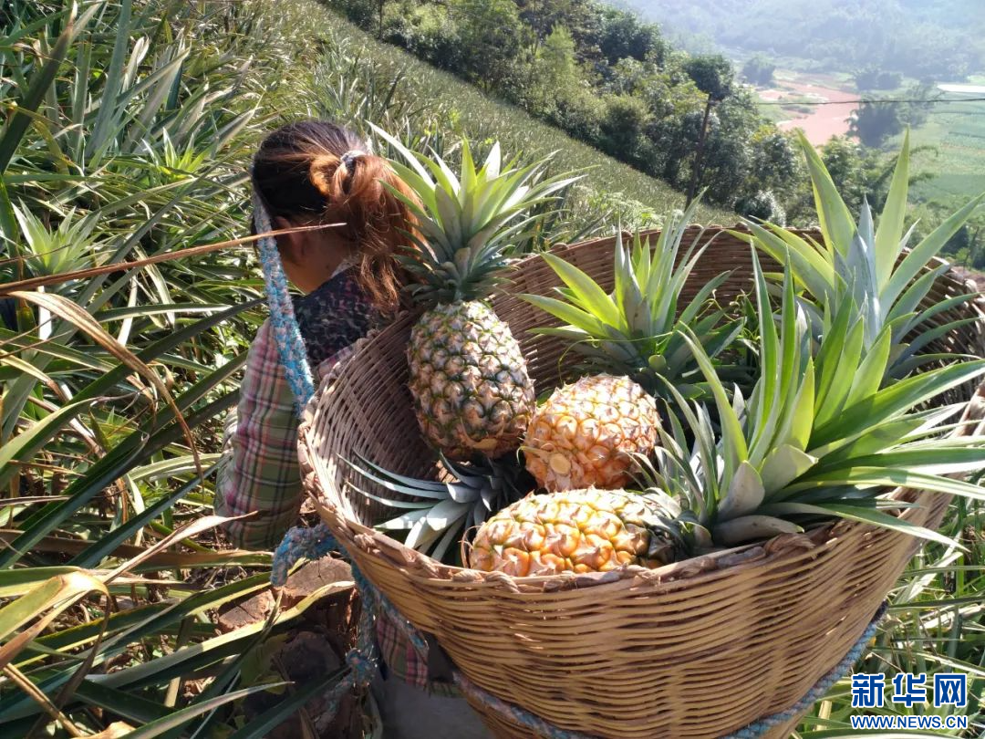 近日,云南省景谷傣族彝族自治县凤山镇那肖田村民小组的菠萝进入采摘季,金黄色的菠萝散发出诱人的芳香,为繁忙的劳动者增添了一丝甜意。