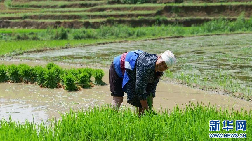 开展秧苗栽插工作(5月17日摄)。新华网发(广南县融媒体中心)