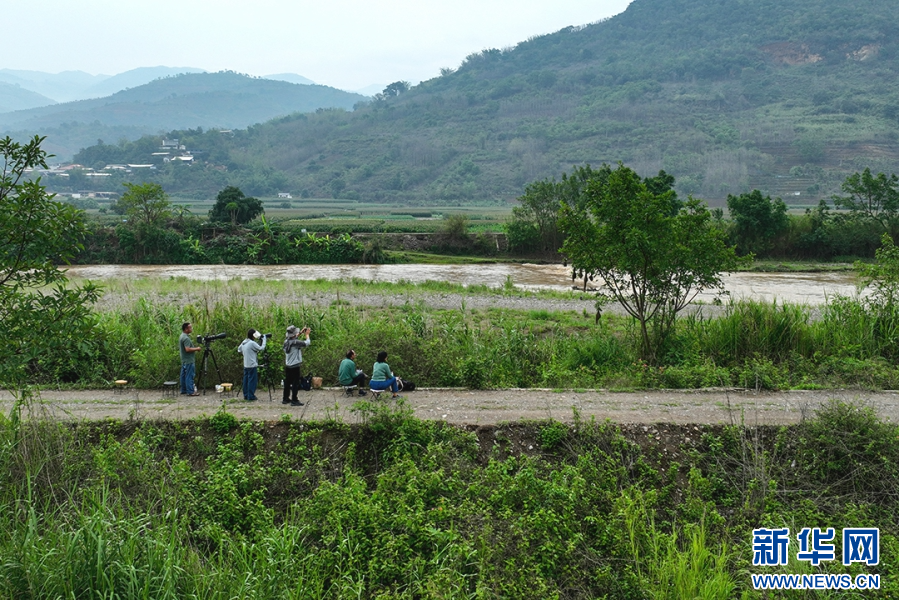 黄胸织布鸟筑巢吸引鸟类爱好者观鸟(6月6日摄)。新华网发(昌宁县融媒体中心供图)