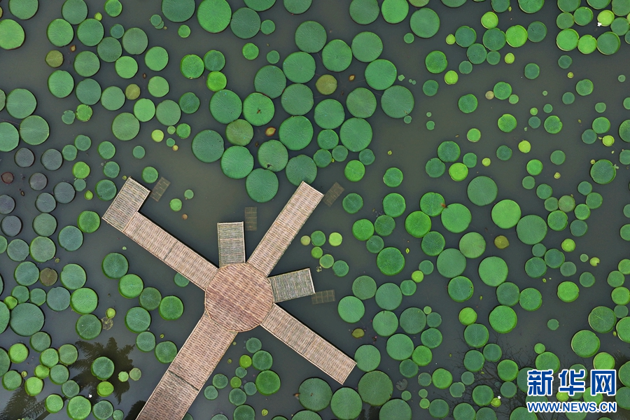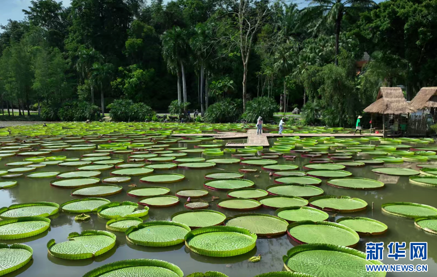 航拍视角下的中国科学院西双版纳热带植物园王莲池局部。新华网发(张娇娇 摄)