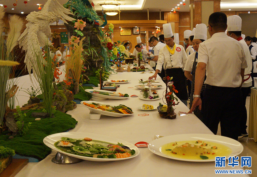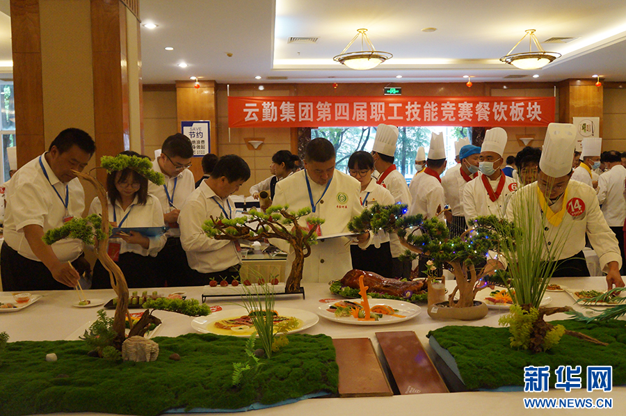 面条做的孔雀栩栩如生、萝卜丝制作的龙雕刻精细……一道道美食色泽艳丽、摆盘精致,让人眼花缭乱。这是6月15日,云南云勤服务集团有限责任公司(以下简称云勤集团)第四届职工技能竞赛的现场。