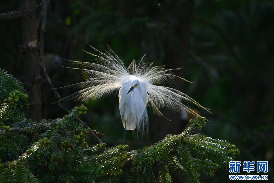白鹭展示漂亮的蓑羽(6月11日摄)。新华网发(昌宁县融媒体中心供图)