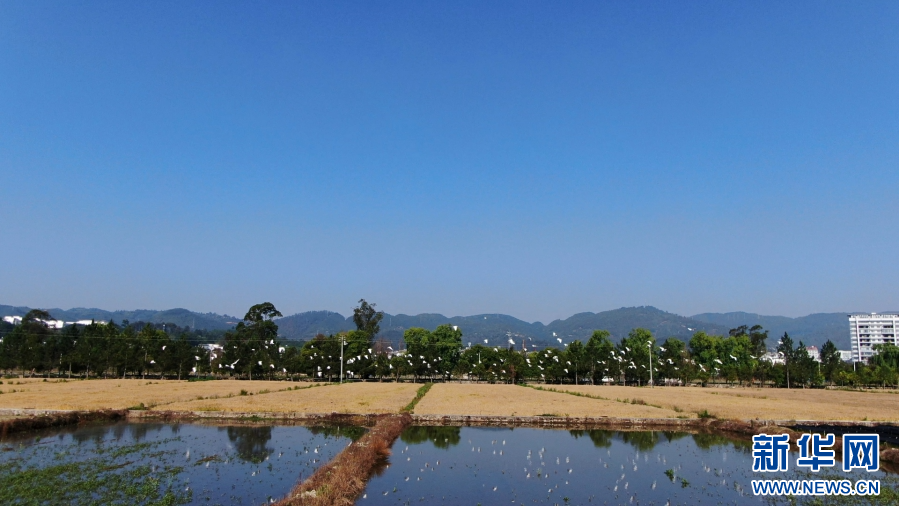 成群白鹭觅食(6月11日摄)。新华网发(昌宁县融媒体中心供图)