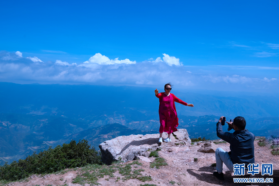 游客在丘北县舍得草场拍照打卡(6月21日摄)。新华网发(刘起 摄)
