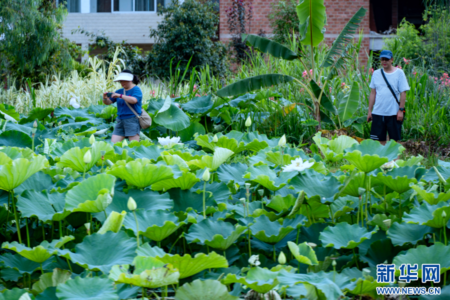 普者黑景区万亩荷塘里的荷花次第绽放(6月21日摄)。新华网发(刘起 摄)
