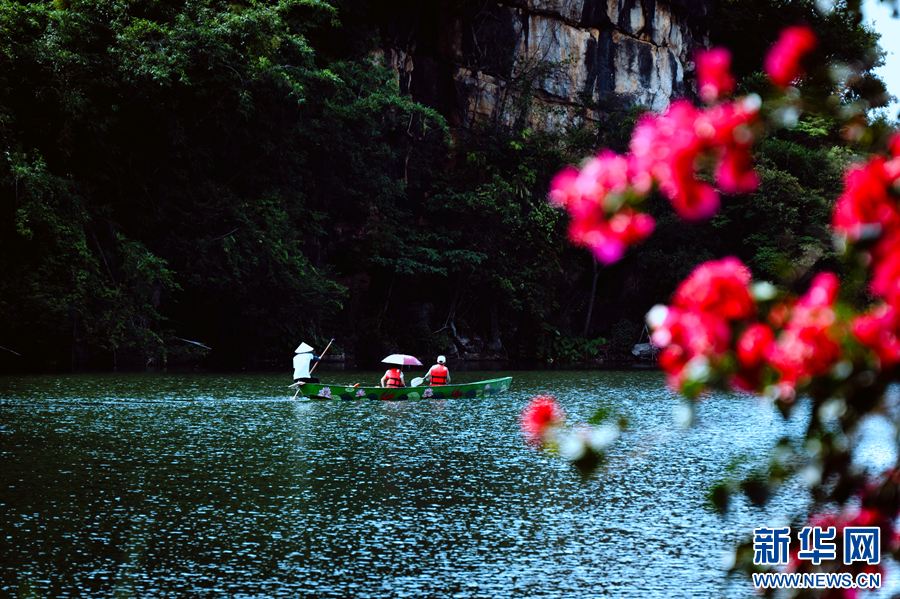游客在普者黑景区乘船游玩(6月21日摄)。新华网发(刘起 摄)