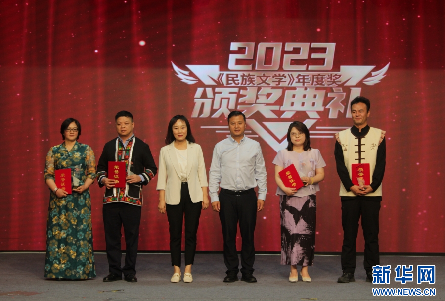 2023《民族文学》年度奖部分获奖作家领奖(6月25日摄)。新华网发(和新兰 摄)