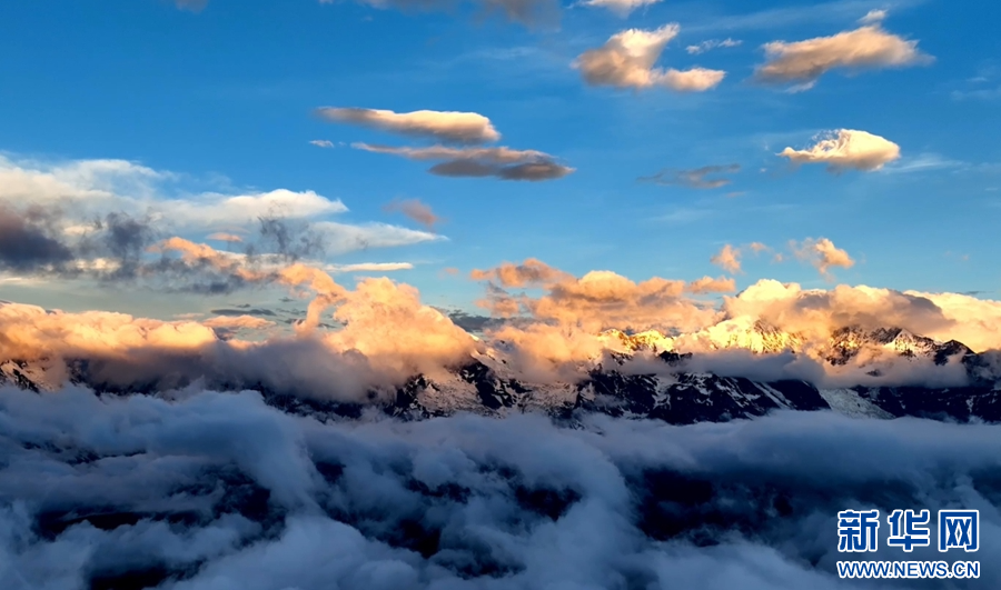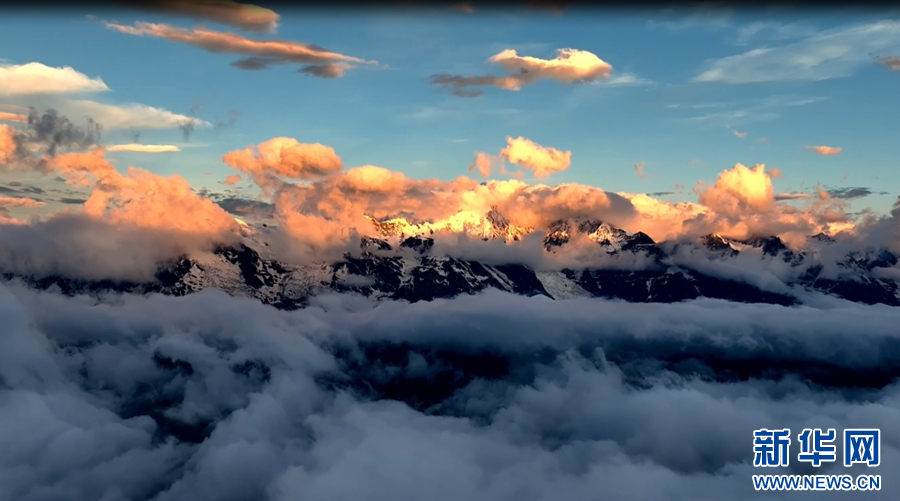 云层之上看“日照金山”美景(视频截图)