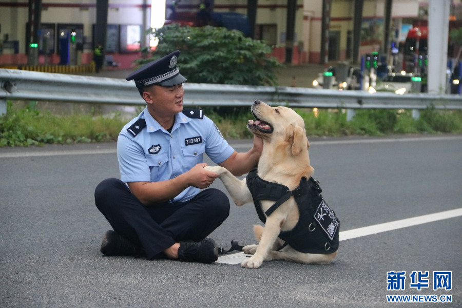 图为胡海波与警犬“云骁”(资料图)。新华网发(保山边境管理支队供图)