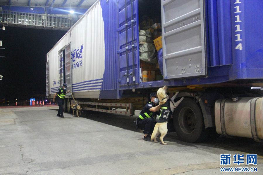 警犬“云骁”对一辆货车进行搜索时发出预警