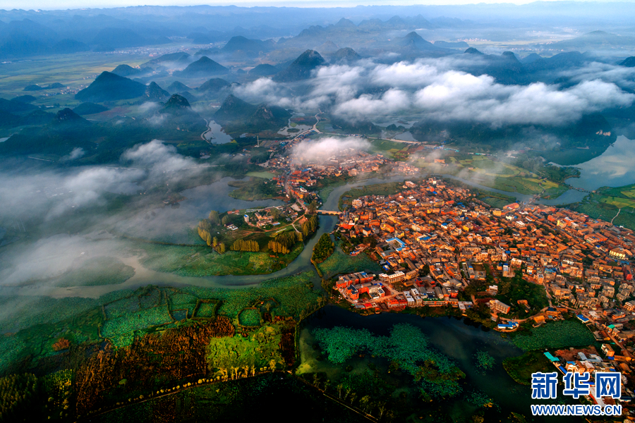无人机视角下的普者黑景区(资料图)。新华网发(文山州融媒体中心供图)