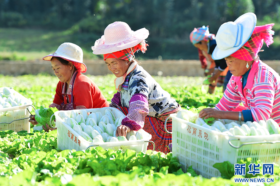 工人正在进行蔬菜采摘(资料图)。新华网发(文山州融媒体中心供图)