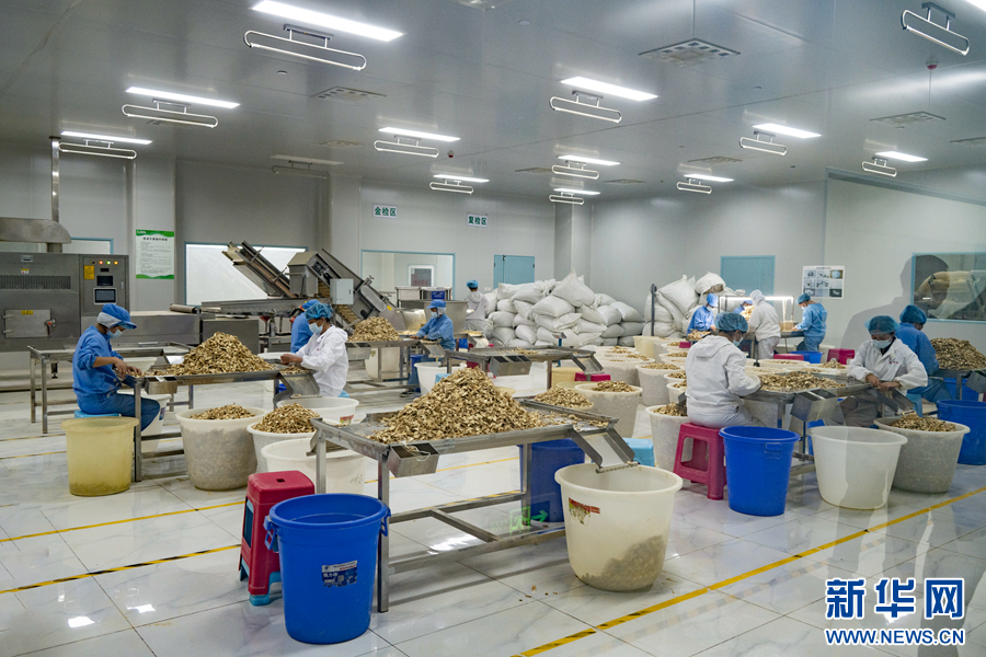 云南罗平一公司的生产车间内,工人正在分拣干姜片(6月19日摄)。新华网发(刘起 摄)