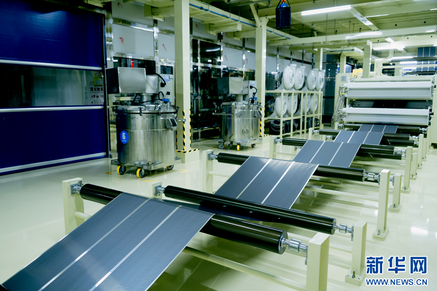 曲靖亿纬锂能有限公司一生产线上,正极涂布设备正在运行(6月17日摄)。新华网发(刘起 摄)