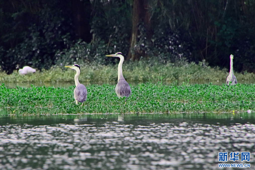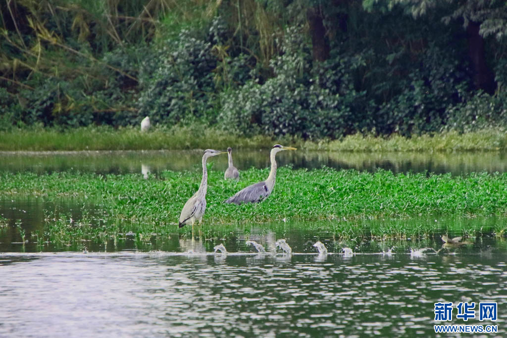 湖泉生态园里的苍鹭和白鹭(6月28日摄)。新华网发(赵树龙 摄)