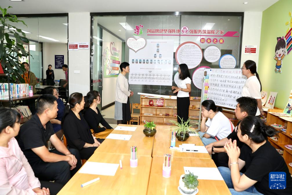 7月14日,在云南玉溪澄江市拥晖社区“童成长:家庭教育服务”项目点,参加亲职教育工作坊的家长与志愿者培训师现场情景演绎一场家庭矛盾。新华社发(夏永 摄)