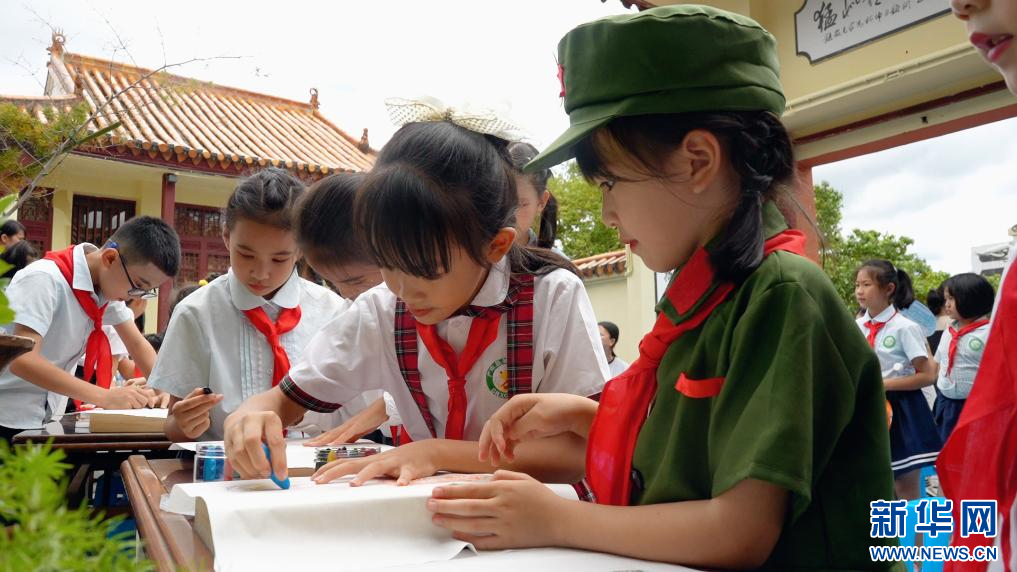 新华网昆明7月23日电(记者 浦超)近日,云南省广南县城区一所小学组织学生到柯仲平纪念馆开展“诵读红色诗韵,赓续革命血脉”诗歌朗诵读书会,孩子们深情朗诵《我们是新生的力量 》《铁打的英雄 》《不到黄河心不甘》等柯仲平创作的经典诗作,表演了《狂飙诗人——柯仲平》情景剧。这是进入暑期以来柯仲平纪念馆红色旅游研学的一个缩影。