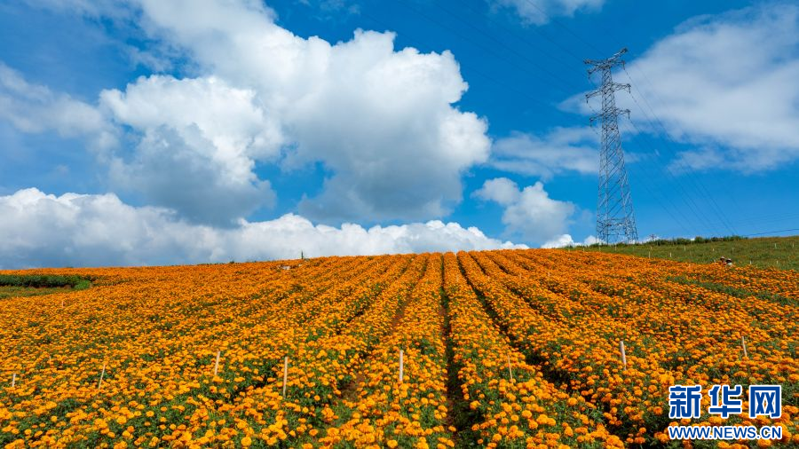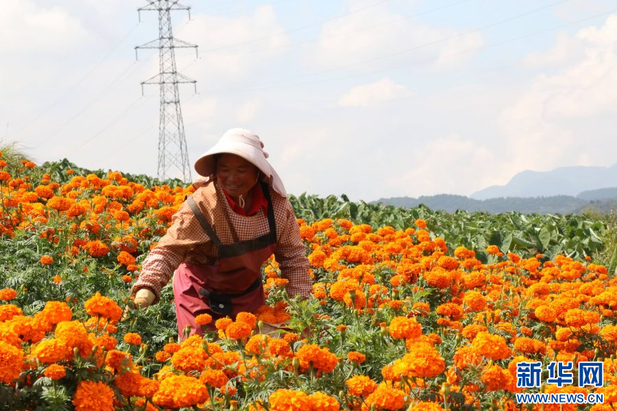 村民采收万寿菊(7月24日摄)。新华网发(杨玥莞 摄)