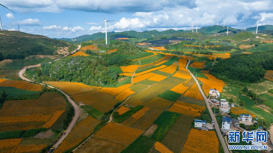 航拍万寿菊(7月24日摄)。新华网发(李星 摄)