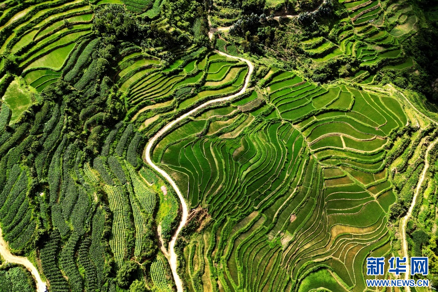 航拍梯田美景(7月23日摄)。新华网发(适志宏 摄)