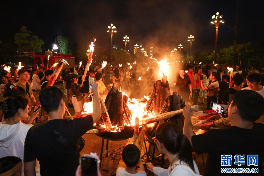 点火把(7月27日摄)。新华网发(楚雄州融媒体中心 高建波 摄)