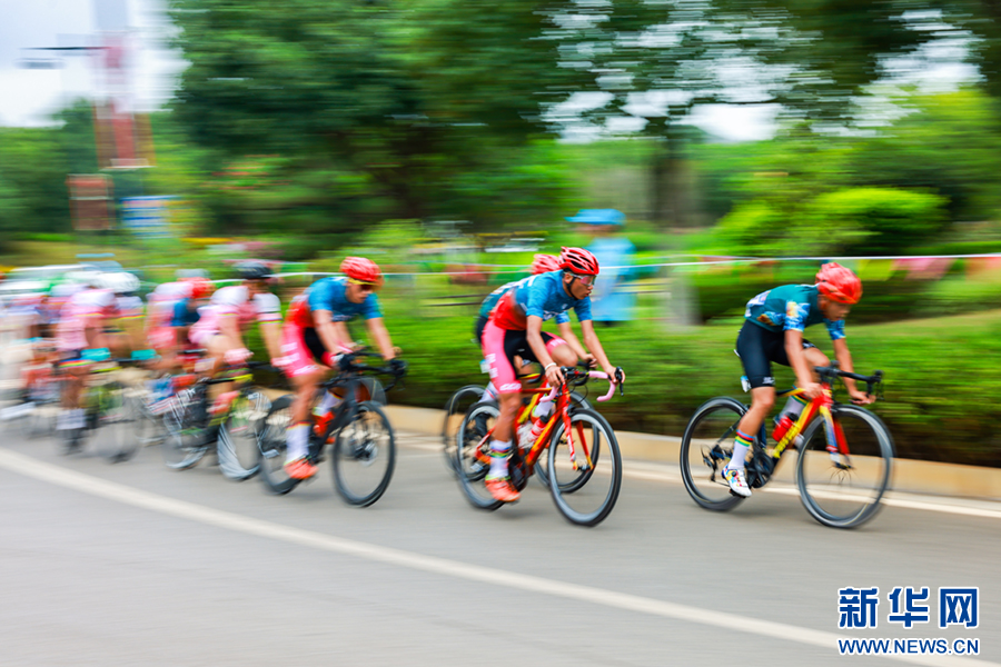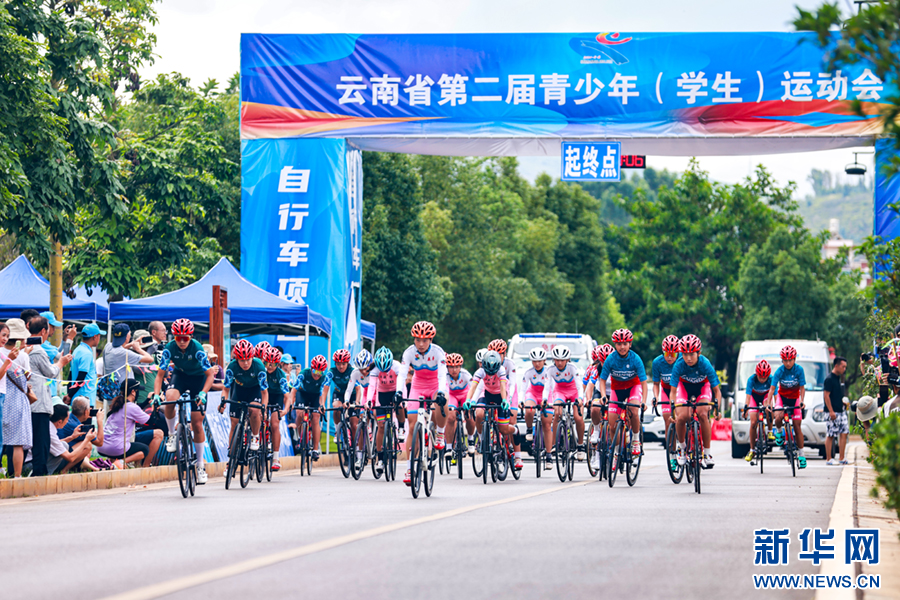 7月19日上午,云南省第二届青少年(学生)运动会公路自行车赛在红河州开远市开赛。新华网发(陶家淇 摄)