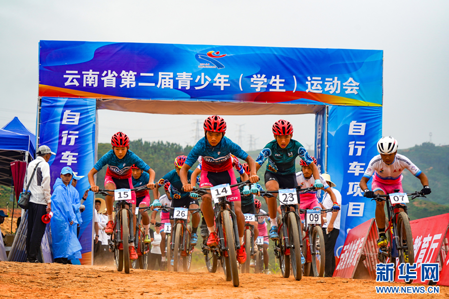 7月20日,云南省第二届青少年(学生)运动会山地自行车项目比赛现场。新华网发(赵东霖 摄)