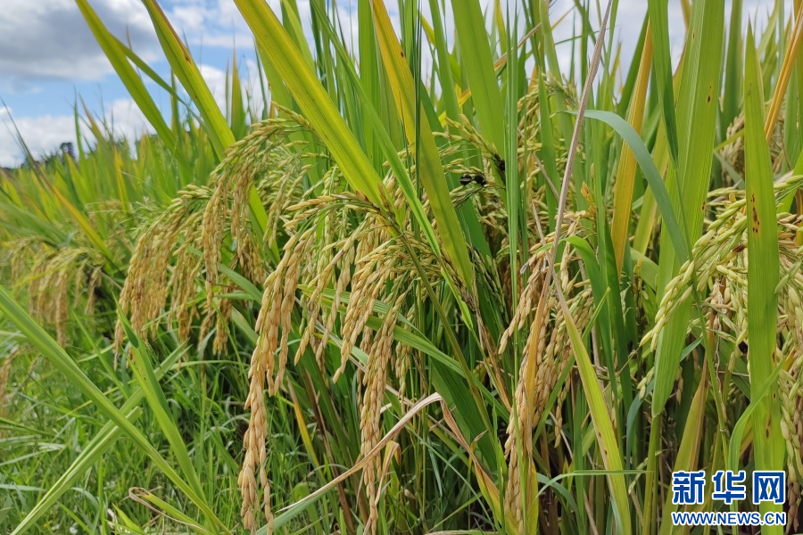 沉甸甸的稻穗(8月2日摄)。新华网发(景谷县融媒体中心供图)