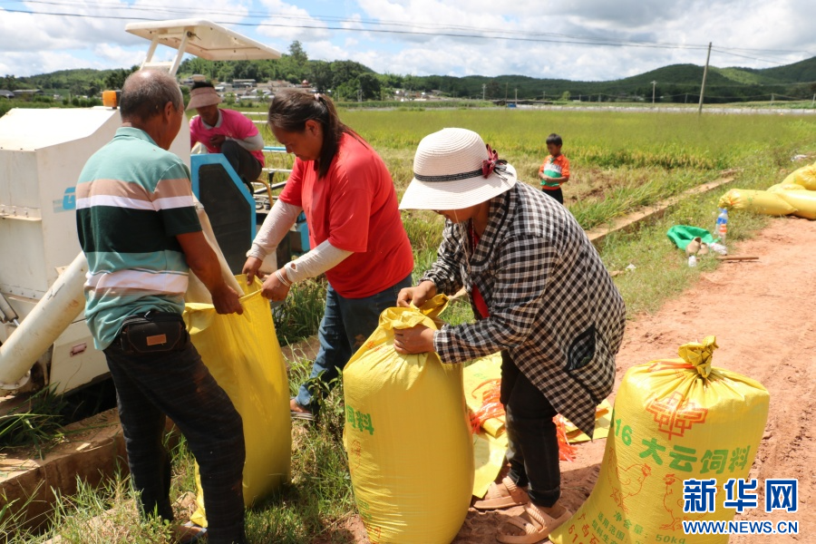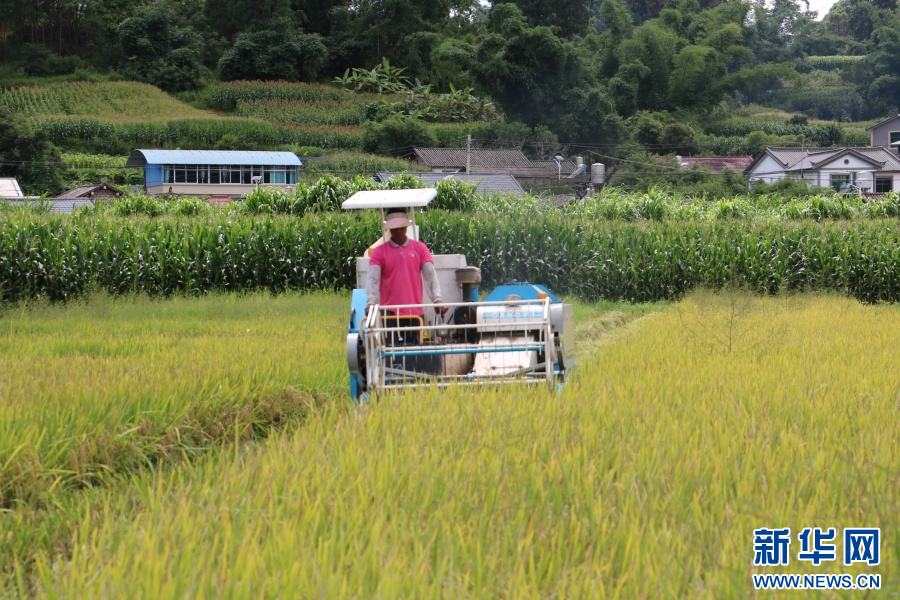 收割水稻(8月2日摄)。新华网发(景谷县融媒体中心供图)