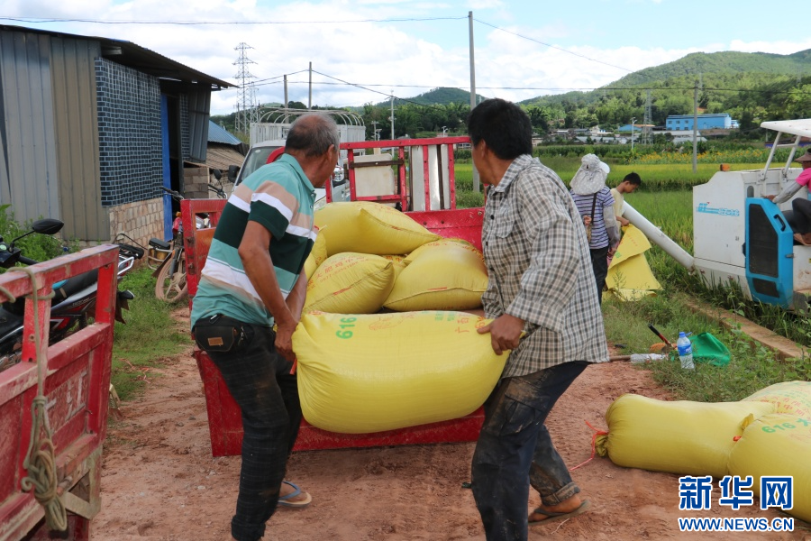 稻谷装车(8月2日摄)。新华网发(景谷县融媒体中心供图)