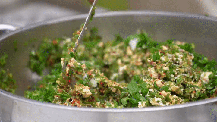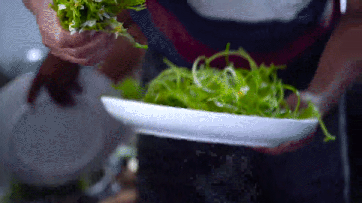 洱源县右所镇松曲村海菜种植户张灿美介绍:“‘海菜豆腐’是道开胃菜,把海菜拿进(沸)水烫一下,捞出剁碎,加入本地的干豆腐、蒜末、辣椒等配料,爽口又爽心。”