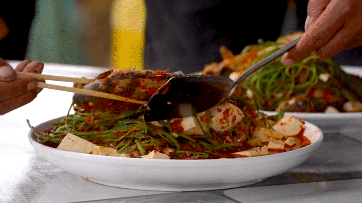 “海菜鱼”的做法简单,将鱼洗净,冷水下锅,加入糟辣子、辣椒面、木瓜片等调料,小火慢炖至鱼入味,汤汁浓郁时再放入豆腐和海菜。这样煮出来的鱼“鲜、酸、辣、香”,让人回味无穷。