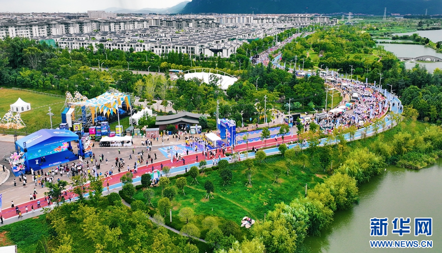航拍视角下的2024滇池东岸国际咖啡文化嘉年华(摄于8月10日)。