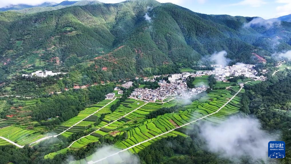 入秋,云南省大理白族自治州宾川县国家级生态乡镇拉乌乡33万亩森林苍翠欲滴,云雾在群山之间缭绕,仿佛人间仙境。万亩良田在雨水的滋养下生机盎然,蓝天、碧水与翠峦交织在一起,构成了一幅生机勃勃的生态画卷。