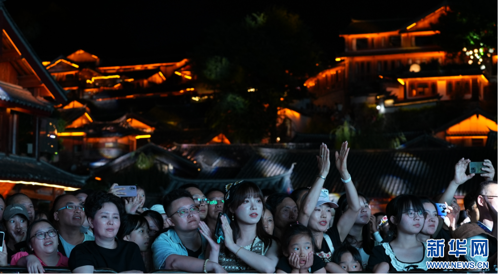 2024丽江民谣音乐季启动仪式现场游人如潮,丽江市融媒体中心8月9日摄。