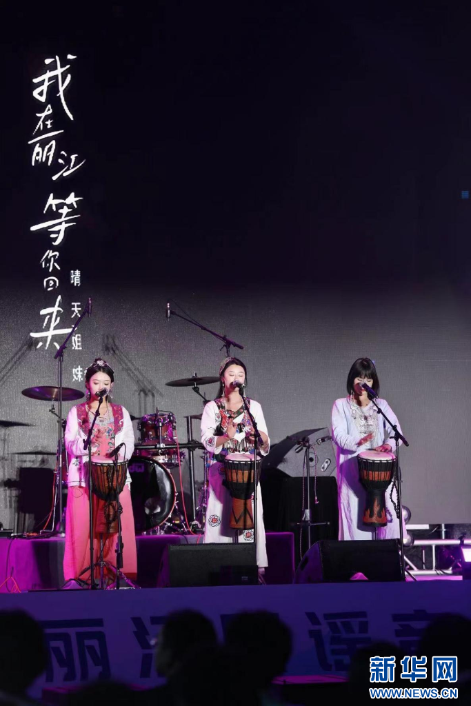这是民谣歌手在活动现场表演,丽江市融媒体中心8月9日摄。