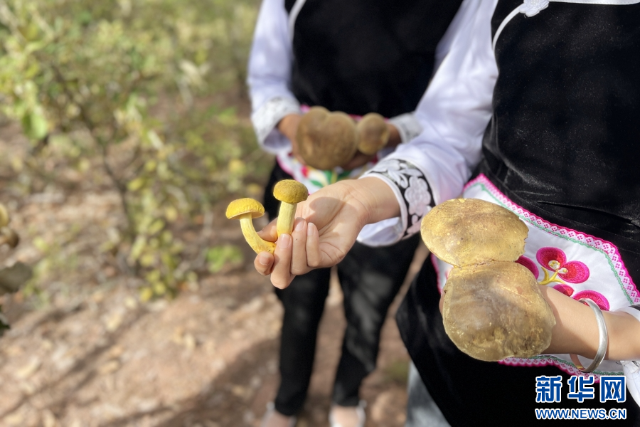 游客体验野生菌采摘,收获满满(8月9日摄)。新华网发(周奕汐 摄)