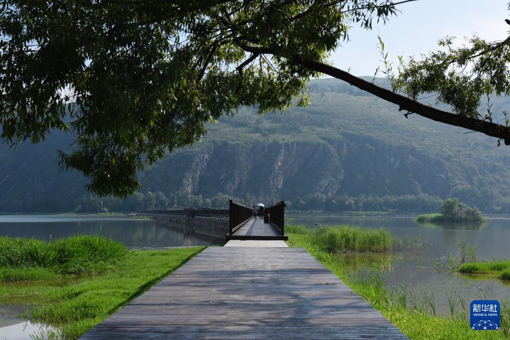 这是8月21日拍摄的茈碧湖畔的生态廊道。新华社记者 刘思远 摄