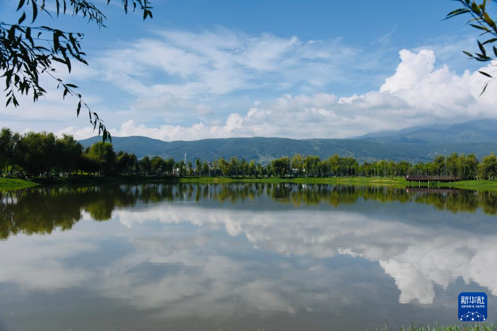 这是8月21日拍摄的茈碧湖弥茨河入湖口处的湿地公园。新华社记者 刘思远 摄