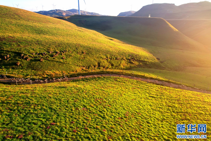 航拍草甸上的羊群(8月17日摄)。新华网发(罗朝俊 摄)