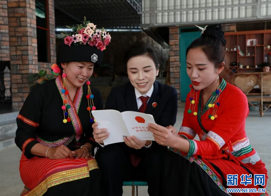 玉喃溜在给群众做普法宣传(资料图)。新华网发(供图)